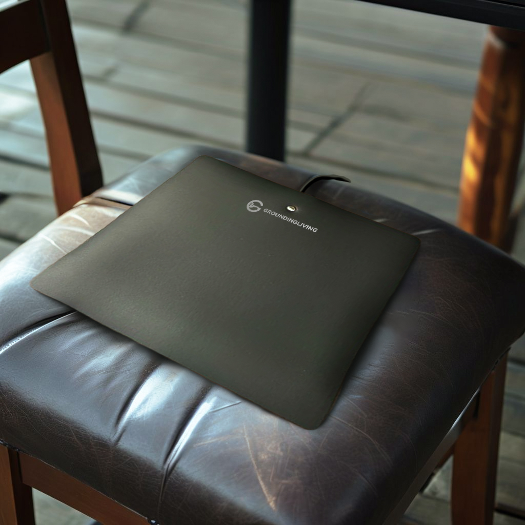Place the mat under your chair or directly where your feet or skin will make contact. Snap in the grounding cord and plug it into a properly grounded outlet. You’ll be passively connected to Earth’s electrons while seated.